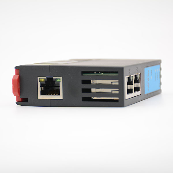 RVNet-PN具備兩個(gè)物理性接口,LAN1和LAN2口分別具備獨(dú)立的局域網(wǎng)能力。其中LAN1為一個(gè)雙RJ45接口,具備交換機(jī)功能,用于連接PLC;LAN2為單端口RJ45,主要用于上位機(jī)采集或者觸摸屏的連接。